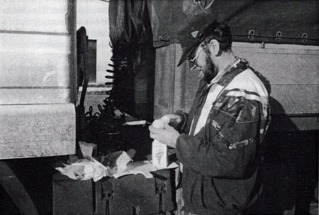 We went to a office when people came to work in the morning. A liaison officer was called Ewa Wröblewska or something like that. We asked for her at help desk. When foolish us didn’t immediately understand, a girl led us by the hand to attic where Ewa was. Ewa asked how things were in Finland and we lied that fine, but she probably would have lied to us too if we would have asked something like that. Ewa told us to drive second road left. We drove, not to first but to second, but it happened to be the first road that second. We gave files to an agent and he told us to wait in the truck. We waited. Cooked food. Waited.